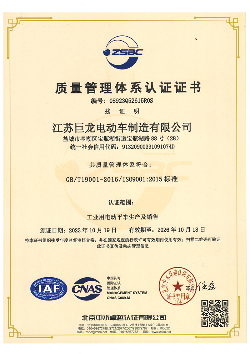 江蘇巨龍電動車制造有限公司是國內(nèi)具有20年集研發(fā)、生產(chǎn)、銷售、售后于一體的專業(yè)電動車輛設(shè)備公司。位于江蘇省鹽城市高新區(qū)(原市開發(fā)區(qū)),占地20000平方米,建筑面積約1 2000平方米,緊鄰寧靖鹽高速、204國道、南洋飛機(jī)場,交通便捷。公司現(xiàn)有員工95余人,專業(yè)技術(shù)人員35余人,工程技術(shù)人員10人。擁有良好的制造、檢測、實驗設(shè)備和完善的技術(shù)服務(wù)體系,為全國大、中型工礦企業(yè)、鋼廠、機(jī)械冶金、電廠、車站、港口、機(jī)場、市政環(huán)保部門、城管、公安、旅游景點、小區(qū)物業(yè)等行業(yè)提供雄厚的技術(shù)力量,是國內(nèi)生產(chǎn)電動搬運(yùn)車的專業(yè)生產(chǎn)廠家。標(biāo)志著江蘇巨龍邁向發(fā)展的新臺階,必將促進(jìn)巨龍公司更加快速、長足的發(fā)展。